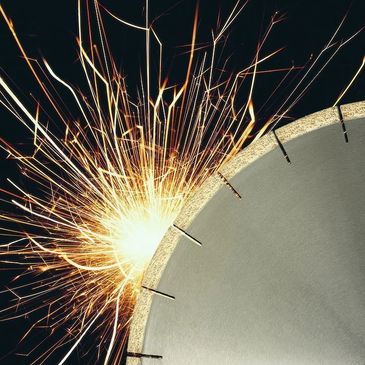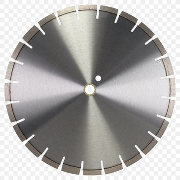 Turbo-style segmented blade for high-speed cutting of granite and concrete.